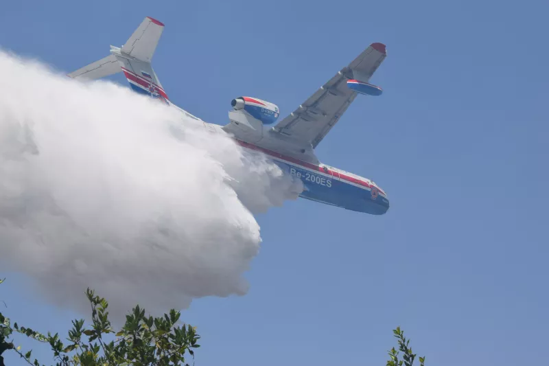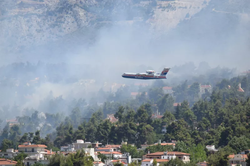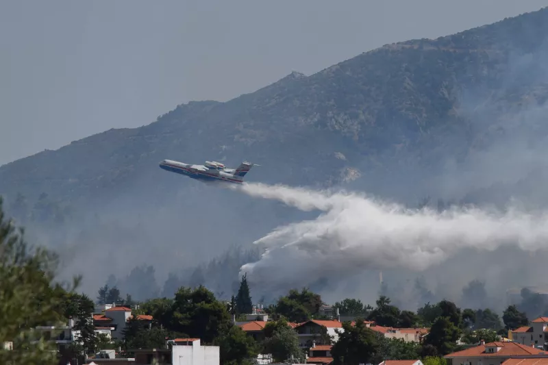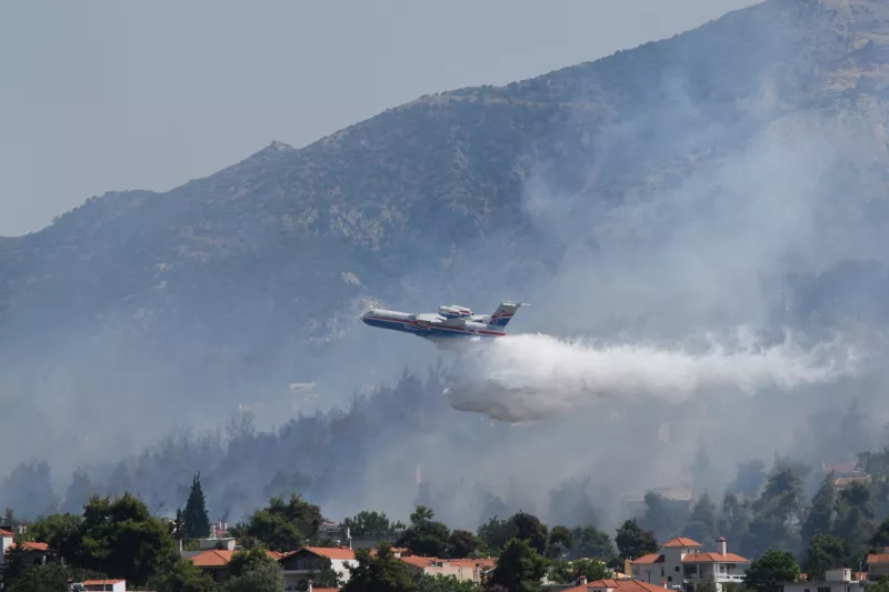 Στη μάχη για την αντιμετώπιση του πύρινου μετώπου σε Σταμάτα, Ροδόπολη, Διόνυσο ρίχθηκε το ρωσικό πυροσβεστικό αεροσκάφος Beriev-200.