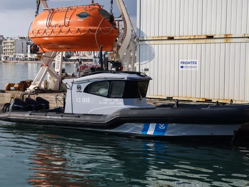 «Δεν είναι φουσκωτό το περιπολικό του λιμενικού, το «μαύρο ζωνάρι» είναι το ενισχυτικό, και κάτω είναι πολυαστερικό υλικό, πολύ ανθεκτικό» διευκρίνισε ο κ. Σπανός.