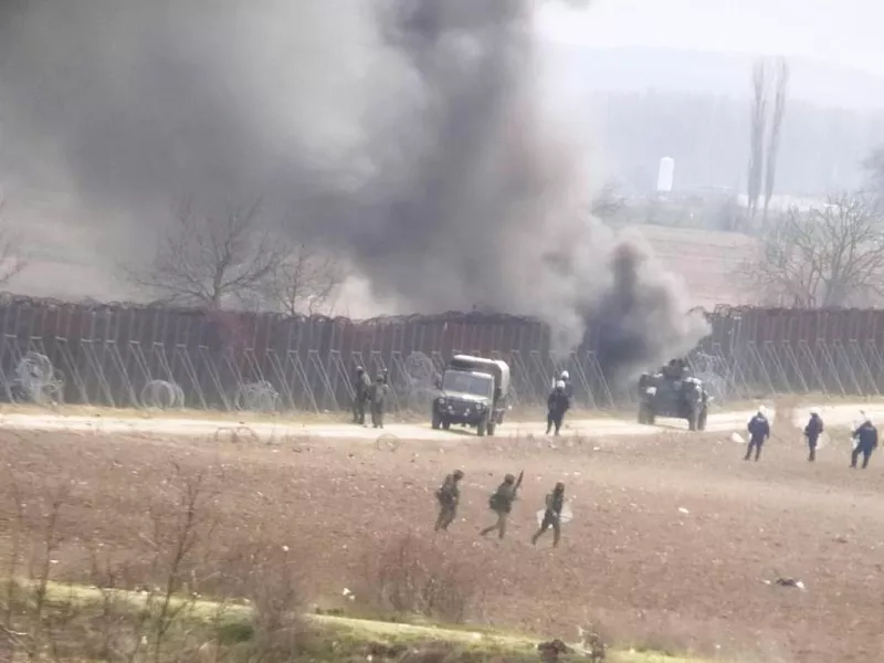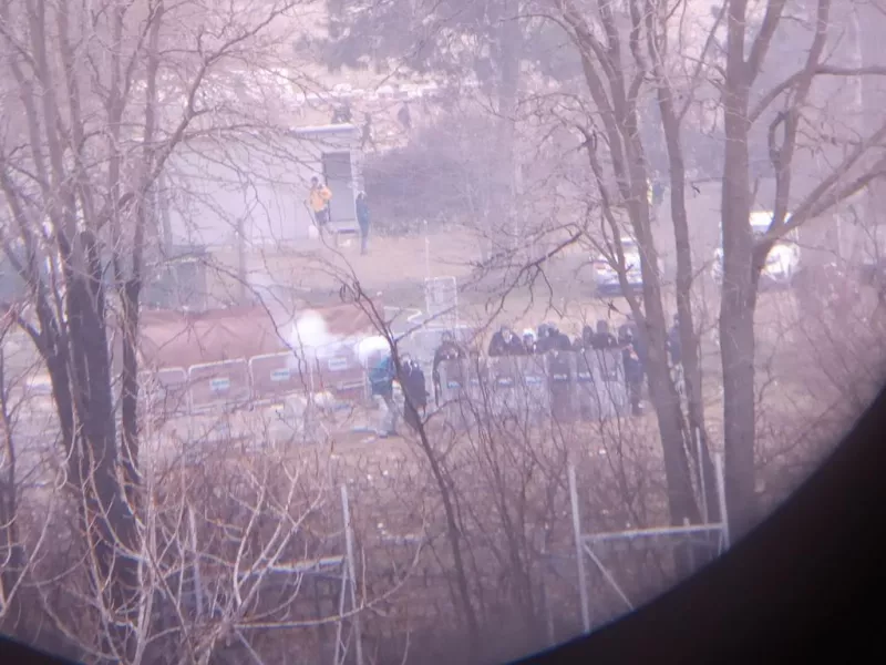 Τα πλάνα που βιντεοσκοπήθηκαν από τα ελληνικά σύνορα δείχνουν την τουρκική αστυνομία να ρίχνει με πολλαπλούς εκτοξευτές (πολυβομβιδοβόλο ή κανονάκι) καπνογόνα και δακρυγόνα προς την ελληνική πλευρά. Όπως φαίνεται καθαρά πρόκειται για διμοιρία της τουρκικής αστυνομίας που βρίσκεται 40 μέτρα από τα σύνορα.
