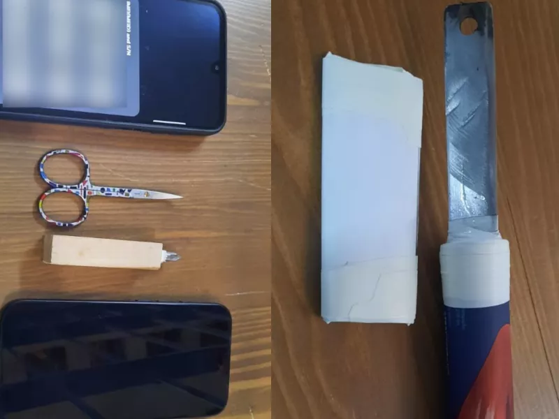 Κατά τη διάρκεια της έρευνας στα κελιά εντοπίστηκαν δύο κινητά τηλέφωνα, καθώς και ένα αυτοσχέδιο μαχαίρι, ένα ψαλιδάκι, φορτιστές και ασύρματα ακουστικά, τα οποία μεταφέρθηκαν άμεσα στη Διεύθυνση Εγκληματολογικών Ερευνών για ανάλυση.
