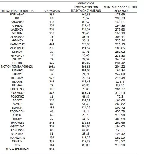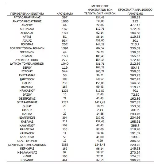 Αναλυτικότερα τα κρούσματα στις περιφερειακές ενότητες που ανήκουν στην Αττική:
