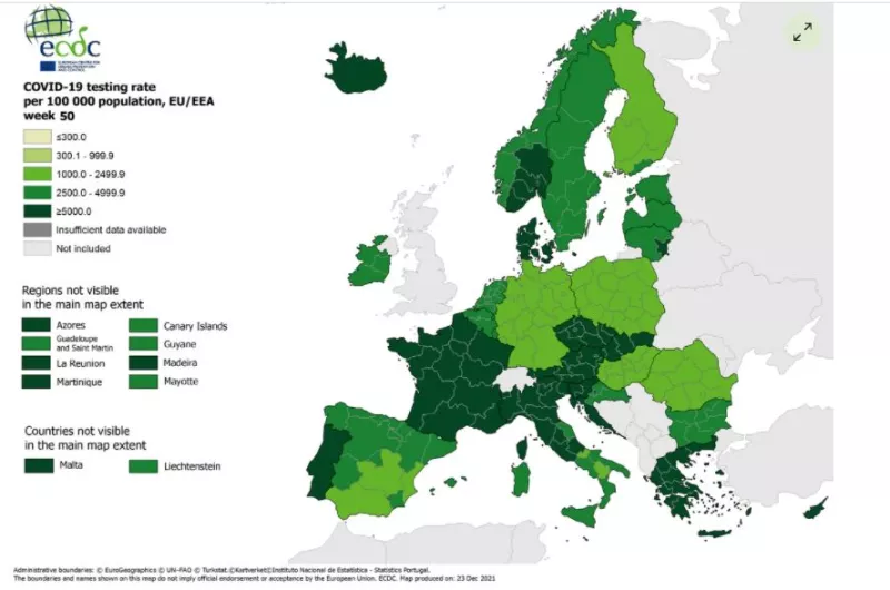 Η Ελλάδα είναι «πράσινη» μόνο σε ό,τι αφορά στον αριθμό των τεστ που διενεργούνται, ενώ στο ίδιο επίπεδο βρίσκεται το μεγαλύτερο μέρος της χώρας με βάση τη θετικότητα.