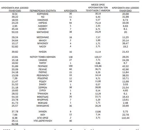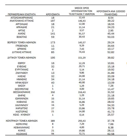 Την ίδια ώρα τριψήφιο αριθμό κρουσμάτων καταγράφουμε σε Θεσσαλονίκη και Αχαία με 350 και 141 μολύνσεις αντίστοιχα.