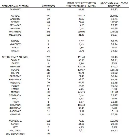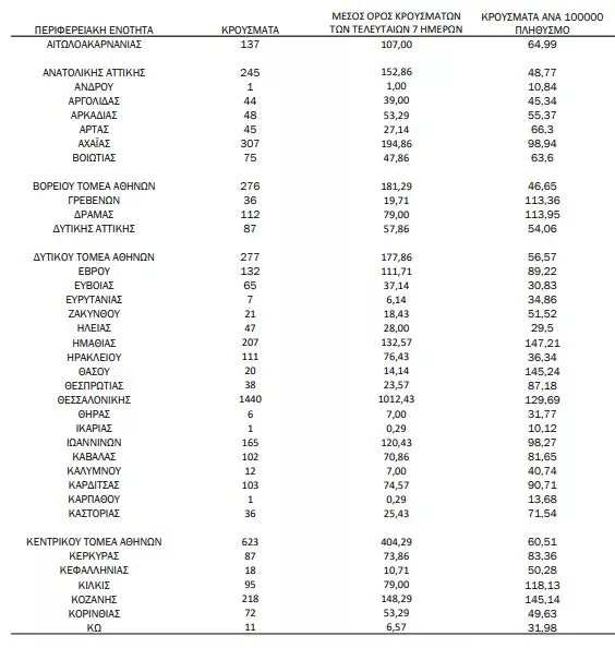 Αναλυτικότερα τα κρούσματα στις περιφερειακές ενότητες που ανήκουν στην Αττική: