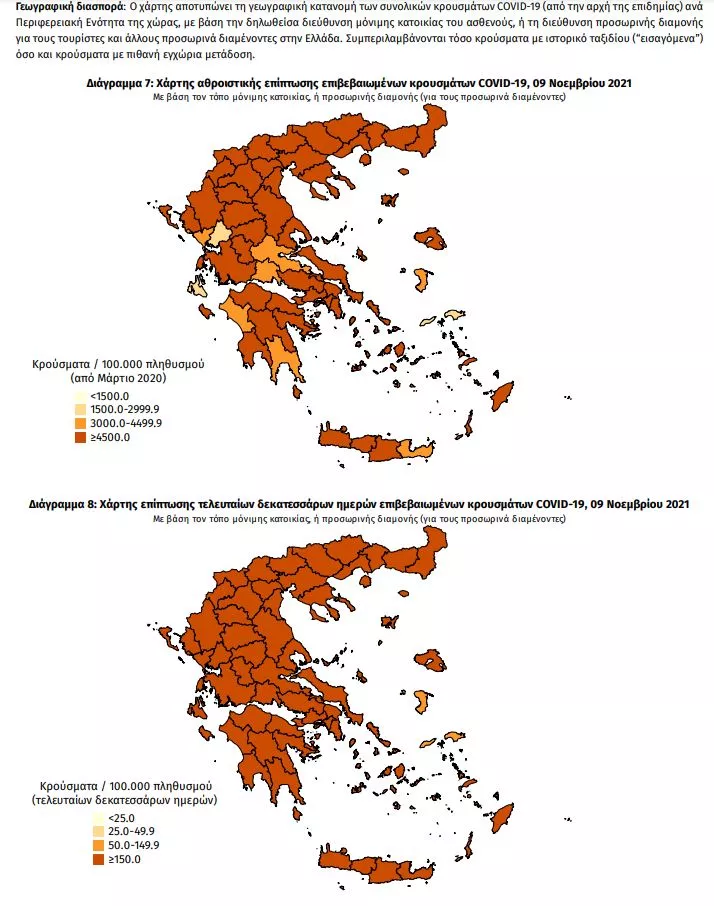 Στο «κόκκινο» παραμένει και η Θεσσαλονίκη με 1.440 νέες μολύνσεις, η Λάρισα με 571, η Αχαΐα με 307 και η Μαγνησία με 276.