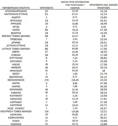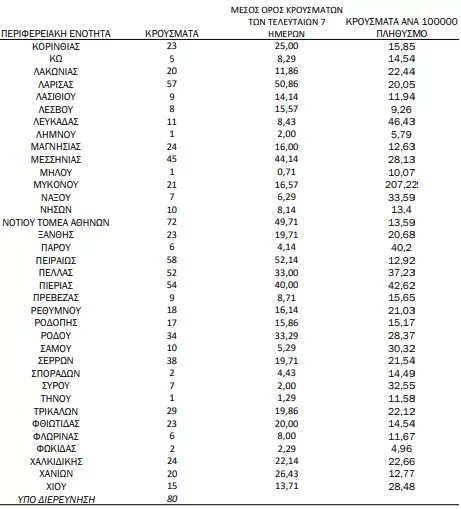 Αναλυτικότερα τα κρούσματα στις περιφερειακές ενότητες που ανήκουν στην Αττική: