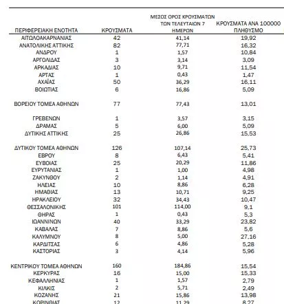 Αναλυτικότερα τα κρούσματα στις περιφερειακές ενότητες που ανήκουν στην Αττική: