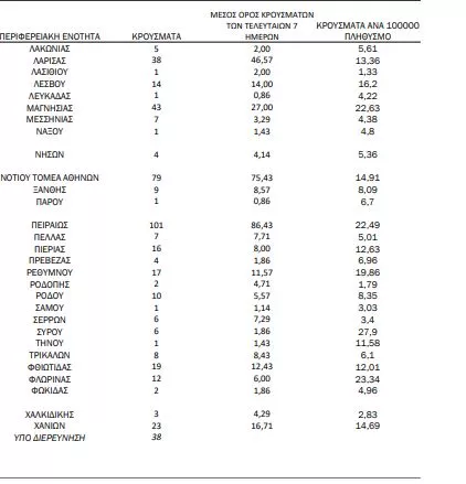 Δείτε αναλυτικά την κατανομή των κρουσμάτων: