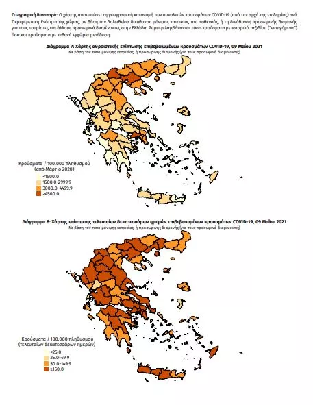 Η γεωγραφική κατανομή των 1.428 κρουσμάτων Covid-19 που ανακοίνωσε σήμερα ο ΕΟΔΥ έχει ως εξής: