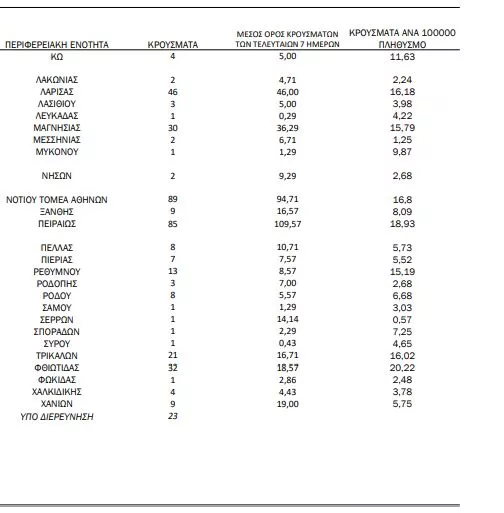 32 κρούσματα στην Π.Ε. Φθιώτιδας