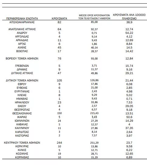 244 κρούσματα στην ΠΕ Κεντρικού Τομέα Αθηνών