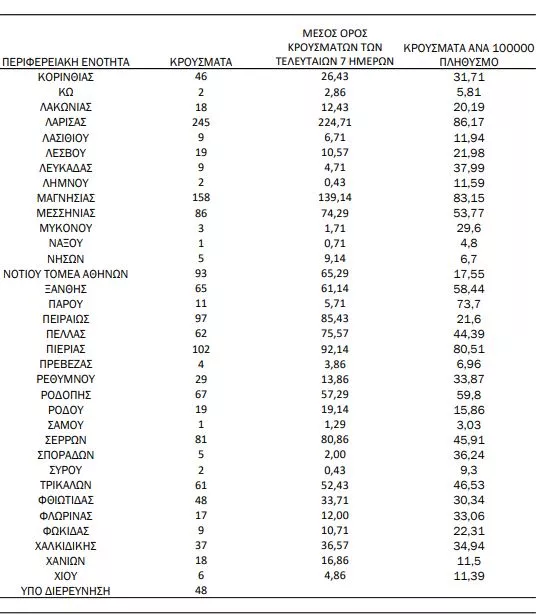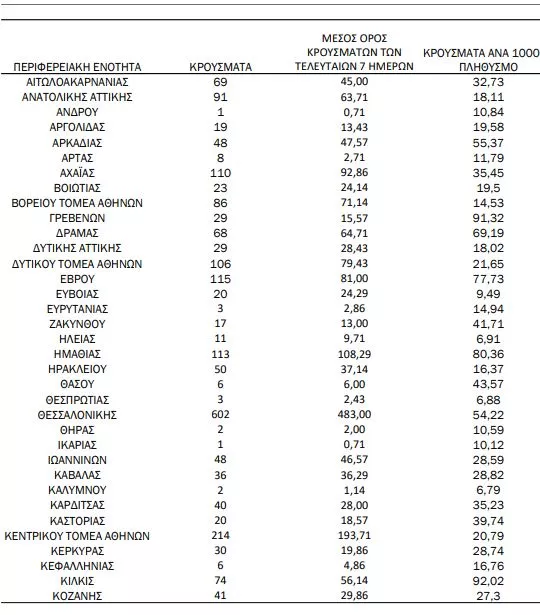 Αναλυτικότερα τα κρούσματα στις περιφερειακές ενότητες που ανήκουν στην Αττική: