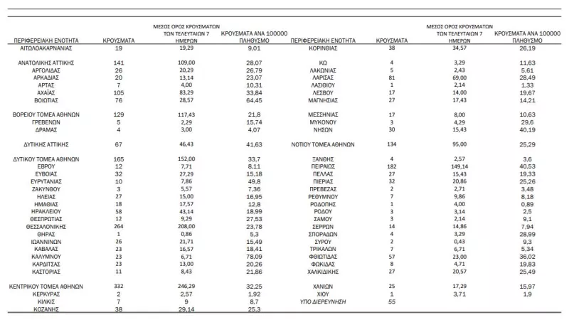 Αναλυτικότερα τα κρούσματα στις περιφερειακές ενότητες που ανήκουν στην Αττική: