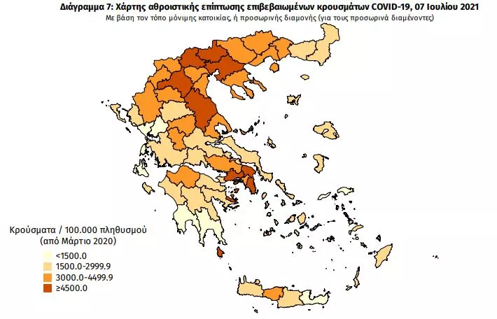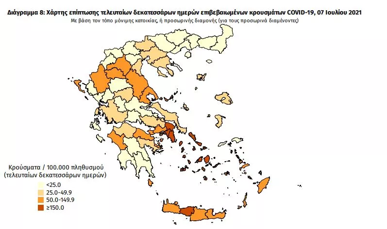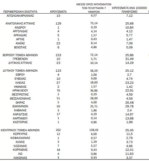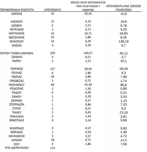 Αξιοσημείωτο είναι ότι στο νομό Ηρακλείου Κρήτης εντοπίστηκαν 70 κρούσματα, ενώ στον νομό Ρεθύμνου 69 κρούσματα.