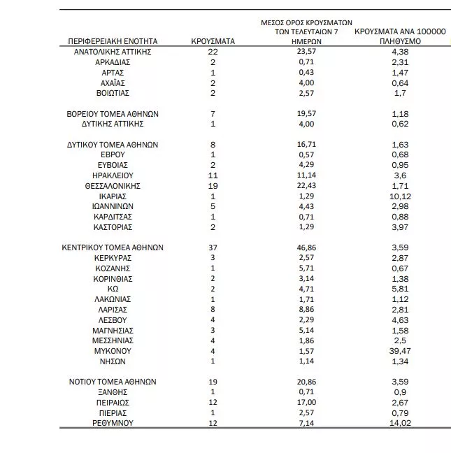 Αναλυτικότερα τα κρούσματα στις περιφερειακές ενότητες που ανήκουν στην Αττική: