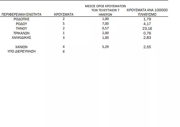 Νήσων: 1 κρούσματα