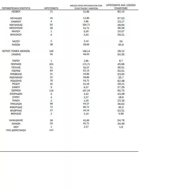 115 κρούσματα υπό διερεύνηση