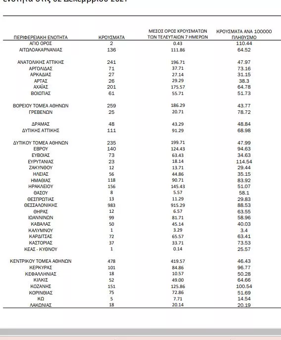 111 κρούσματα στην ΠΕ Δυτικής Αττικής
