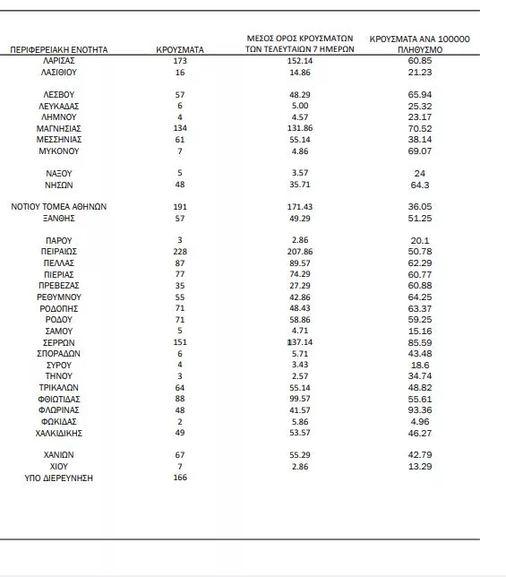 166 κρούσματα υπό διερεύνηση