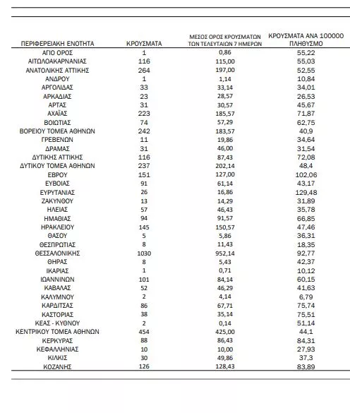 Προβληματισμός επικρατεί και όσον αφορά το ιικό φορτίο και στην Αχαΐα με κρούσματα 223.