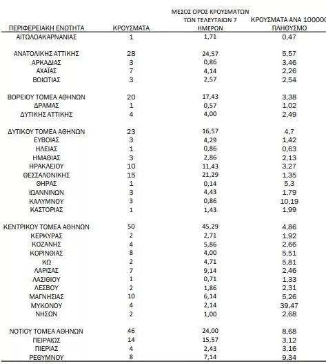 Αναλυτικότερα τα κρούσματα στις περιφερειακές ενότητες που ανήκουν στην Αττική: