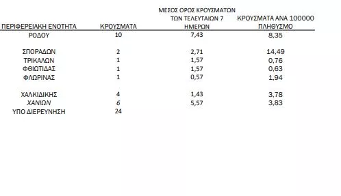 Αναλυτικά η κατανομή των κρουσμάτων: