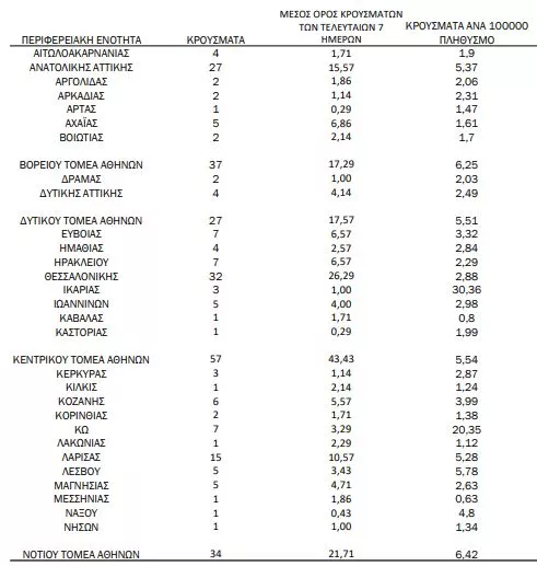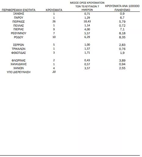 Αναλυτικότερα τα κρούσματα στις περιφερειακές ενότητες που ανήκουν στην Αττική:
