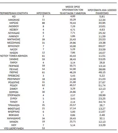 Αναλυτικά, η κατανομή των κρουσμάτων στην Αττική σήμερα είναι η εξής: