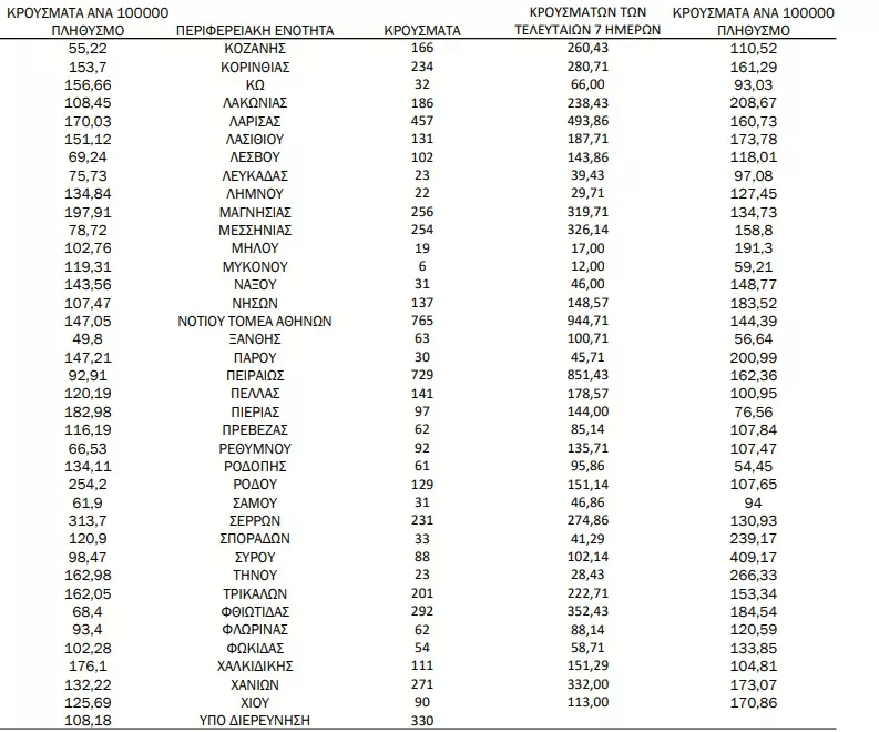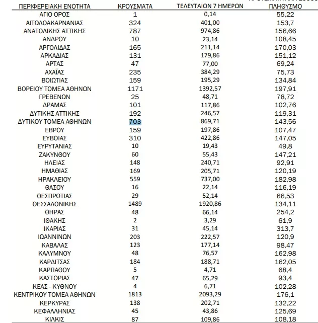 Αναλυτικά η κατανομή κρουσμάτων στο Λεκανοπέδιο: