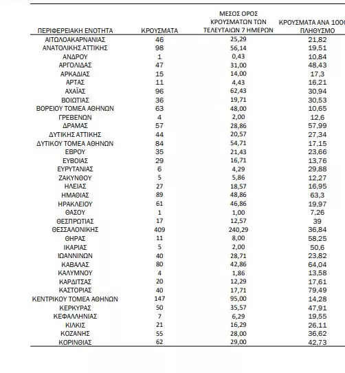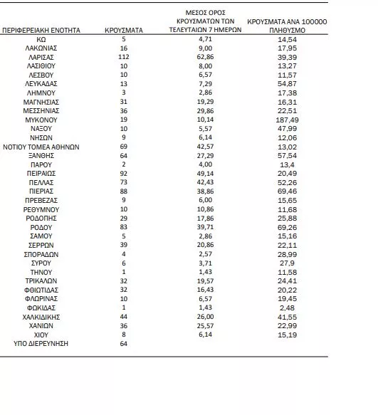 Επιπλέον, στην Κρήτη εντοπίστηκαν 117 νέα περιστατικά.
