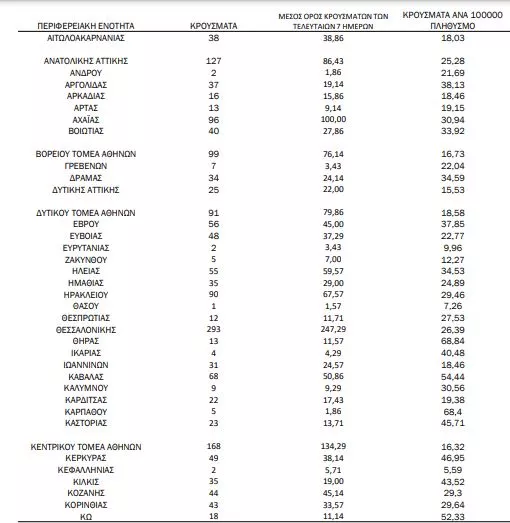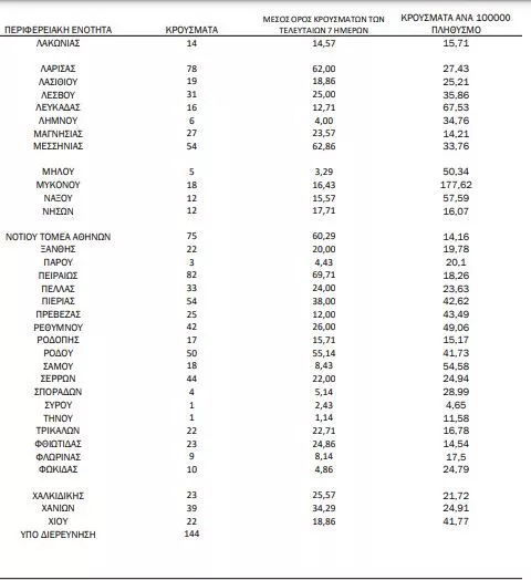 Αναλυτικότερα τα κρούσματα στις περιφερειακές ενότητες που ανήκουν στην Αττική: