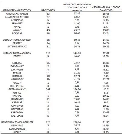 Τα κρούσματα στην Αττική αναλυτικότερα: