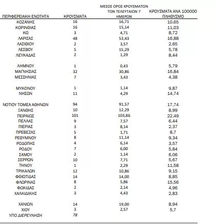 Αναλυτικά η κατανομή των κρουσμάτων: