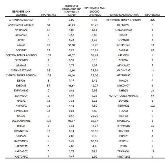 38 κρούσματα στην Π.Ε. Δυτικής Αττικής