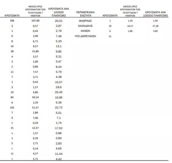 7 κρούσματα στην Π.Ε. Καβάλας