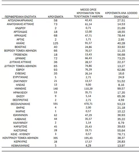 Αναλυτικότερα τα κρούσματα στις περιφερειακές ενότητες που ανήκουν στην Αττική:
