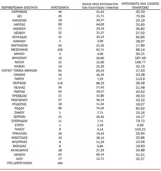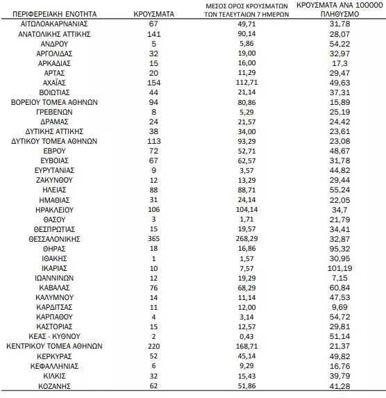 Αναλυτικότερα τα κρούσματα στις περιφερειακές ενότητες που ανήκουν στην Αττική: