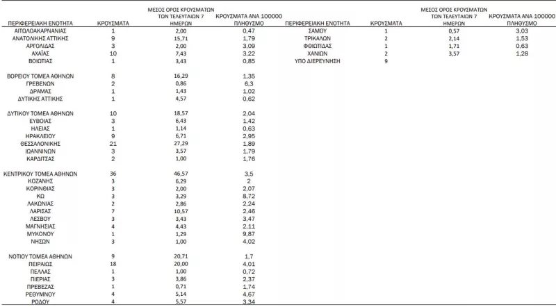 Αναλυτικότερα τα κρούσματα στις περιφερειακές ενότητες που ανήκουν στην Αττική: