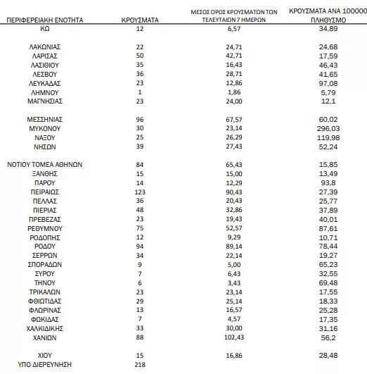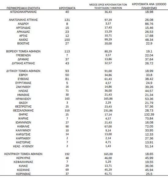 Αναλυτικότερα τα κρούσματα στις περιφερειακές ενότητες που ανήκουν στην Αττική: