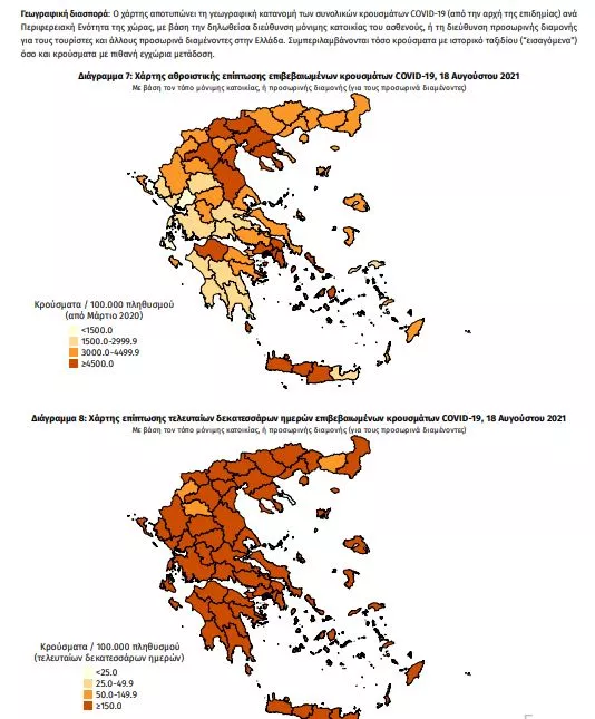 Η γεωγραφική κατανομή των 3.442 κρουσμάτων covid-19 έχει ως εξής: