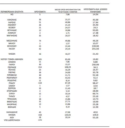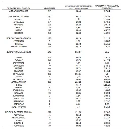 Η κατανομή των κρουσμάτων στην Αττική σήμερα είναι εξής: