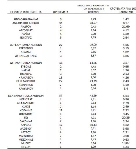 Αναλυτικότερα τα κρούσματα στις περιφερειακές ενότητες που ανήκουν στην Αττική: