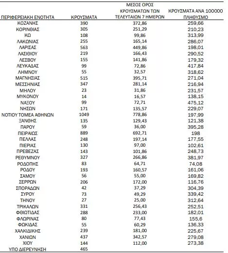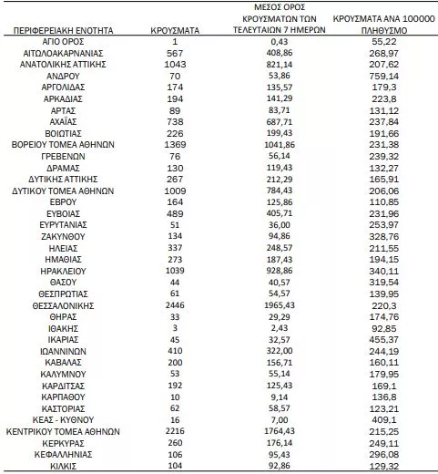 Αναλυτικότερα τα κρούσματα στις περιφερειακές ενότητες που ανήκουν στην Αττική: