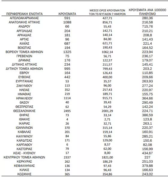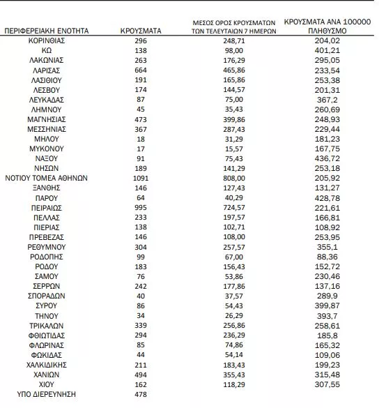 Αναλυτικότερα τα κρούσματα στις περιφερειακές ενότητες που ανήκουν στην Αττική: