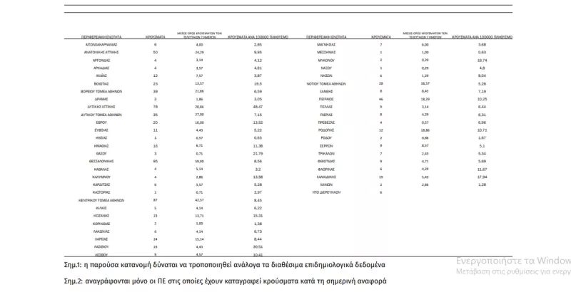 39 κρούσματα στην ΠΕ Βόρειου Τομέα Αθηνών