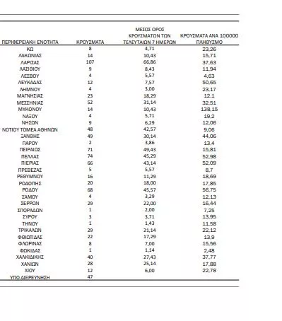 41 κρούσματα στην Π.Ε. Κορινθίας