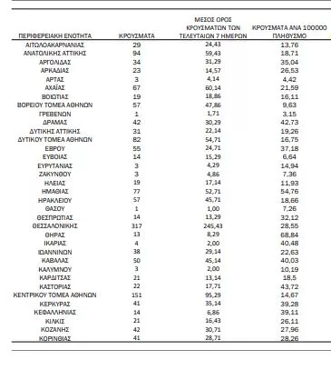 Η κατανομή των κρουσμάτων στην Αττική σήμερα είναι εξής: