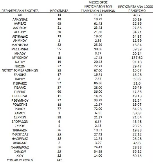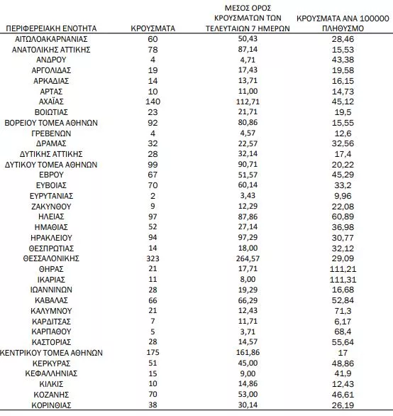 Αναλυτικότερα τα κρούσματα στις περιφερειακές ενότητες που ανήκουν στην Αττική: