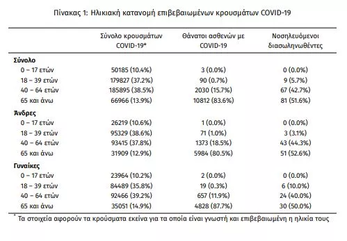 Οι νέοι θάνατοι ασθενών με COVID-19 είναι 9, ενώ από την έναρξη της επιδημίας έχουν καταγραφεί συνολικά 12.935 θάνατοι. Το 95.1% είχε υποκείμενο νόσημα ή/και ηλικία 70 ετών και άνω.