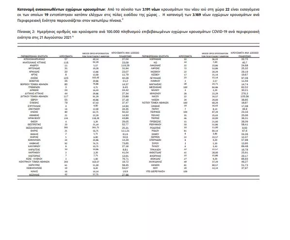 Τα νέα εργαστηριακά επιβεβαιωμένα κρούσματα της νόσου που καταγράφηκαν τις τελευταίες 24 ώρες είναι 3191